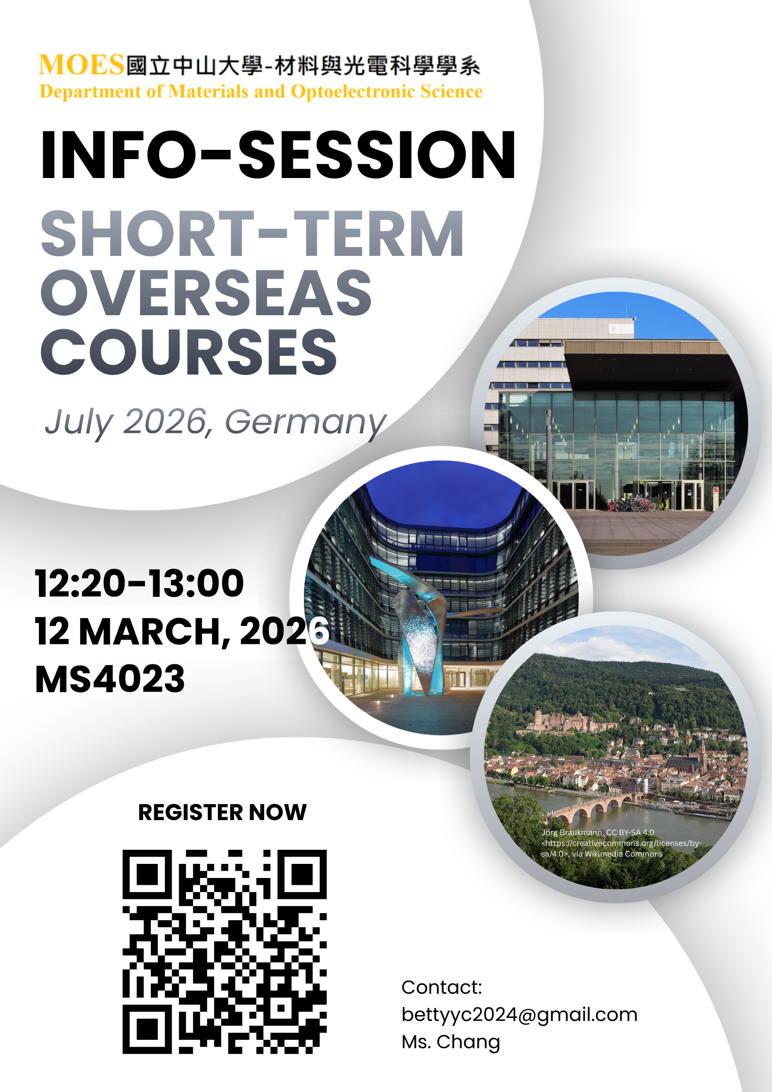 2. 本次出國研修課程說明會將於3/12(四)12:20於MS4023舉行,欲參加者說明會者請於3/10(二)前填寫此份表單報名。